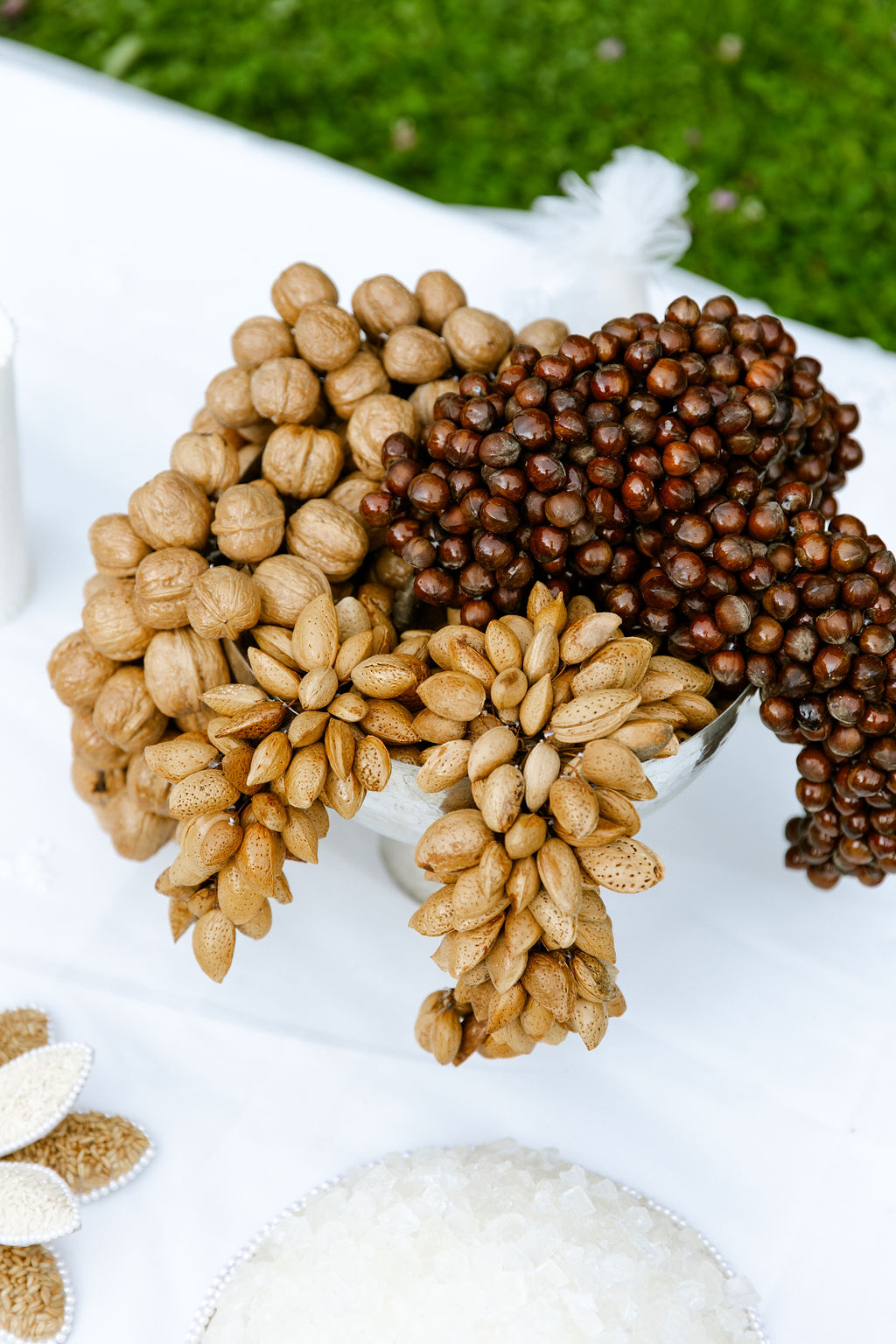 Tokhmeh morgh (Decorated Eggs) & Nuts: Eggs and nuts such as almonds and walnuts symbolize fertility and the wish for children.